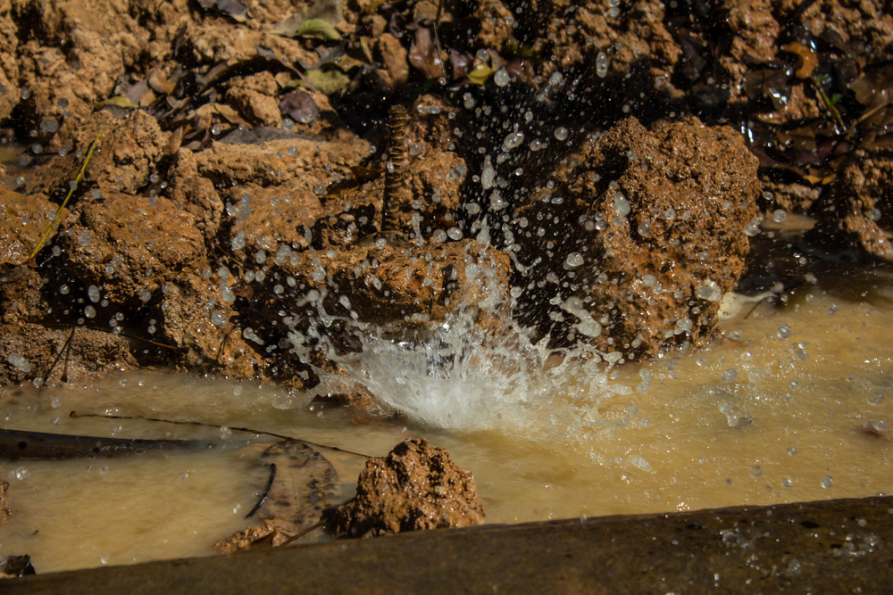 سبب آخر لصوت التسرب تحت الأرض هو عندما تضرب المياه التي يتم دفعها من خلال الشق التربة المحيطة.